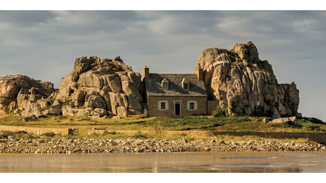 Op de tweede dag van onze fietstocht komen we langs het gehucht Plougrescant. Hier vind je gigantische rotsblokken en zoute binnenmeertjes, maar het meest iconische beeld is het huis dat dat is ingeklemd tussen twee enorme kiezels. Dit huis wordt ook wel ‘Maison-entre-deux-roches’ genoemd en is een geliefd onderwerp voor fotografen.