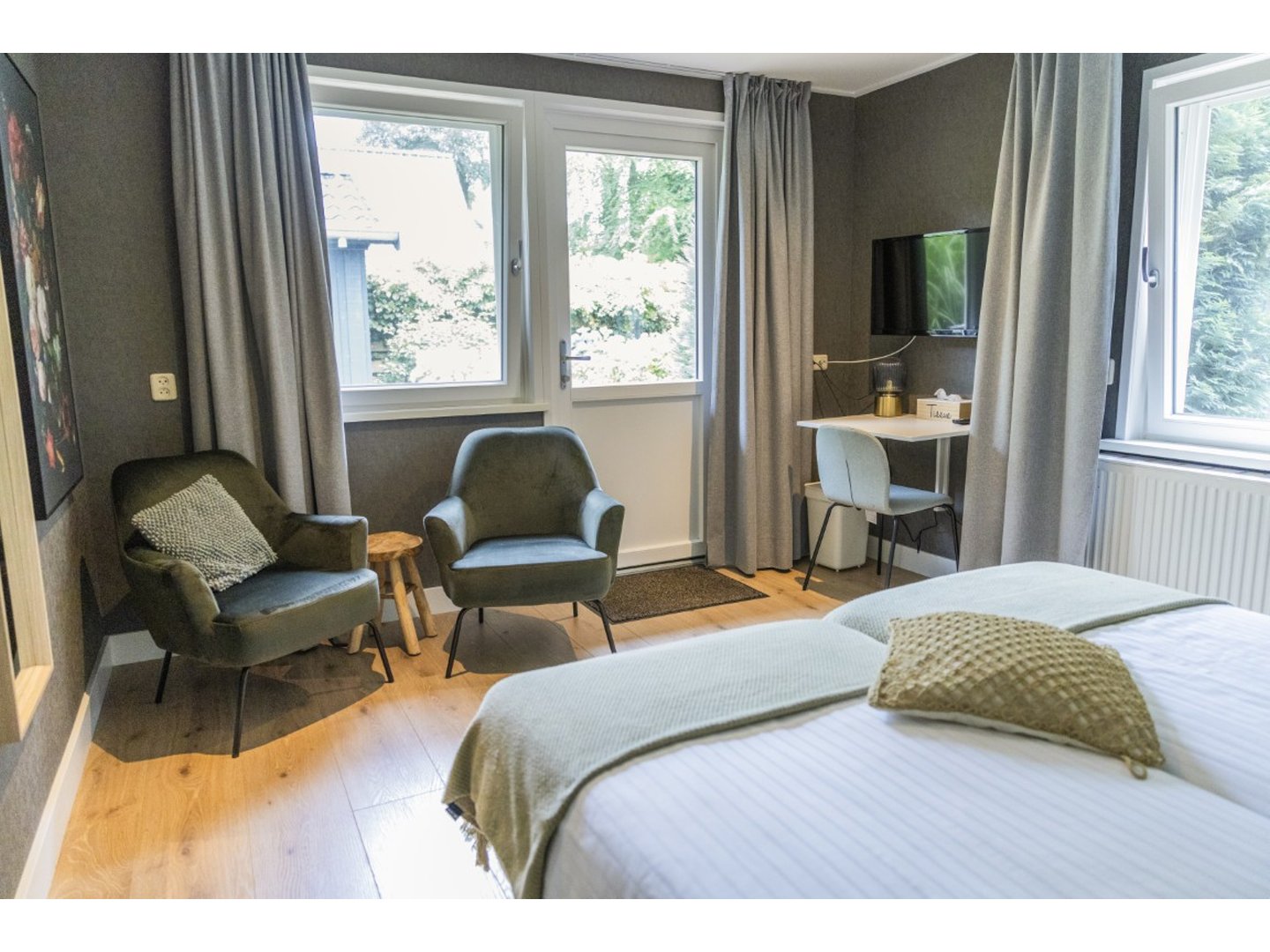 Vanuit je hotel loop je direct het Rijsterbos in. Het bos werd in 1676 aangelegd door de Amsterdamse regent Hiob de Wildt. Hier wandelden vroeger de dames in ruisende rokken langs stervormige boslanen. Dwalend over oude paden kom je bij het Mirnserklif vanaf waar je uitkijkt over het IJsselmeer. Via een andere route door het bos keer je terug naar Rijs.